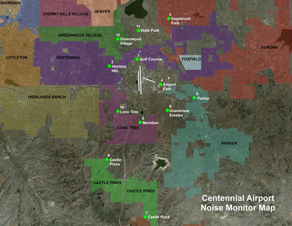 As a result of a $1.4 million investment in 2013 and collaborative effort between CACNR and Centennial Airport, strategically placed pole-mounted noise monitors were placed in various locations in Arapahoe and Douglas counties. The noise monitors continue to provide local officials with a more accurate picture than ever before of the aural disturbances in various communities.